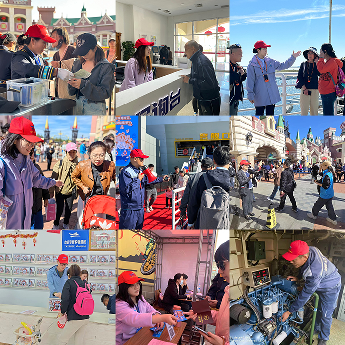 為有效應對“十一”黃金周超級客流高峰,公司黨總支及時發(fā)出號召,組織開展“十一”黨員奉獻日活動,全體黨員積極響應,主動放棄節(jié)日休息時間,全力奮戰(zhàn)檢票、咨詢、簽注、退稅、售票、導游等多個崗位。面對黃金周連續(xù)七天白加黑的高強度工作,他們主動克服困難,始終以高度的熱情為游客提供細心、暖心、耐心服務,以頑強的韌勁詮釋新時代黨員的責任與擔當,在服務游客的第一線豎起一面面鮮紅的旗幟,將黨員的先進性轉化為實實在在的服務行動,帶動全體干部職工打好“十一”創(chuàng)收攻堅戰(zhàn)。
